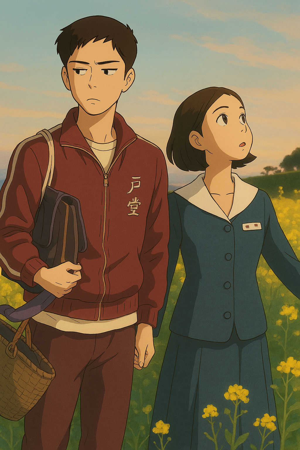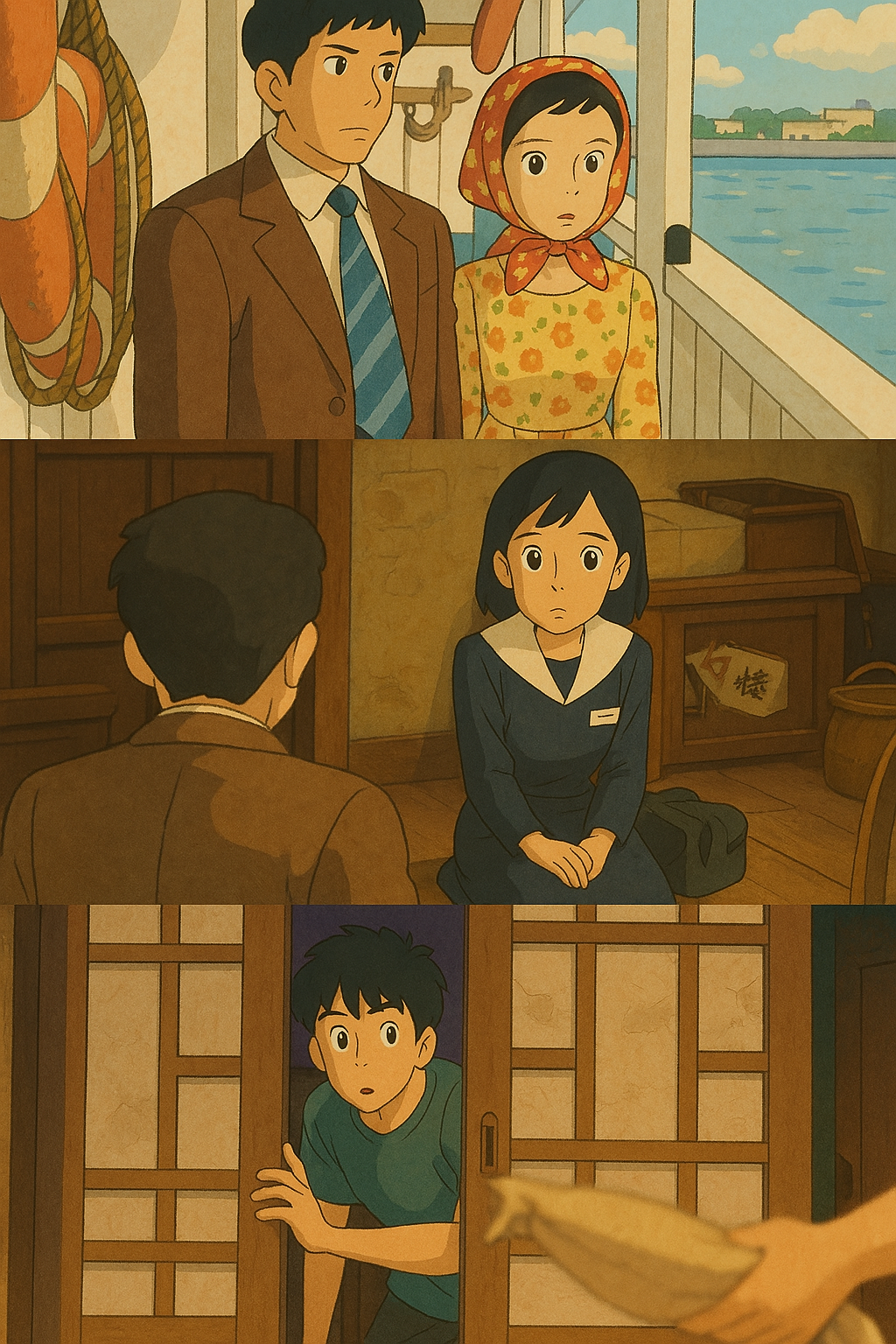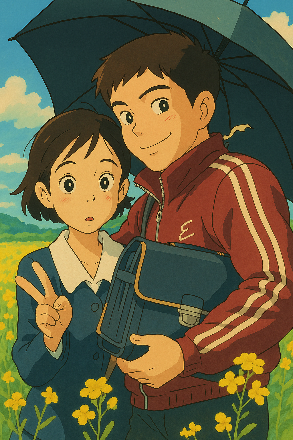 이사진을 일본 애니메이션의 "이웃집 토토로", "벼랑 위의 포뇨" 중 잘 어울리는 스타일 및 색채를 적용해서 변환해줘